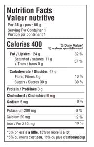 This bar is produced in our dairy, egg, wheat, and gluten-free facility. It’s also non-GMO • vegan • cholesterol-free • refined sugar-free • free of artificial colours and flavours • trans-fat free • certified Kosher Pareve